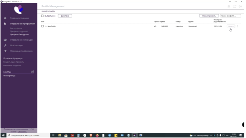 Переходим в Группы находим созданный профиль и нажимаем Начать.